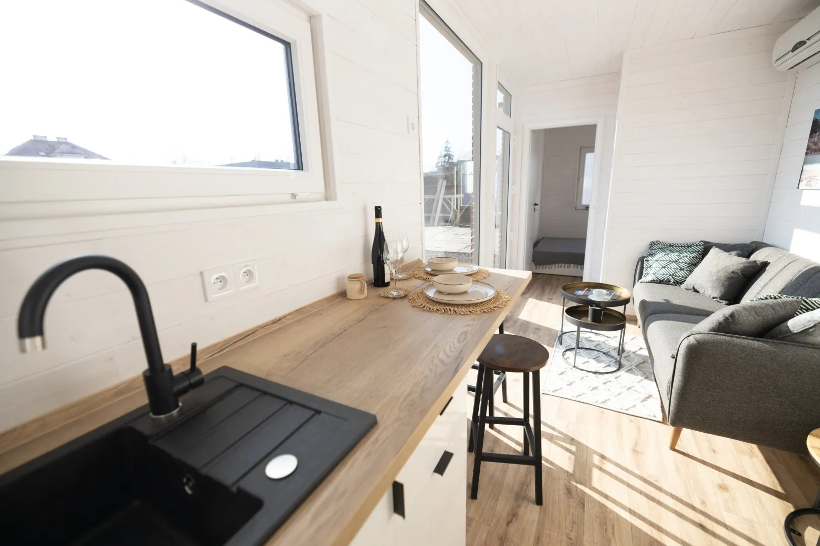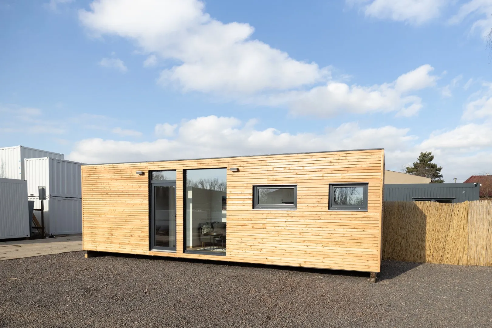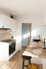 Descubra a espaçosa Tinyhouse Neoglobo de 46m², ideal para famílias ou grupos até 5 pessoas. Com 3 quartos e configuração não mobilada, personalize cada detalhe ao seu gosto. Desfrute de conforto em todas as estações graças ao isolamento eficaz e estrutura robusta. Versátil e luminosa, perfeita para casa de férias ou habitação temporária. Tinyhouse Neoglobo: Crie o seu espaço, viva com conforto.