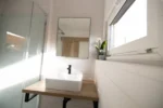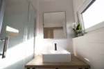 Fogão, torneira, esquentador de 80L, espelho retroiluminado, escada aquecida