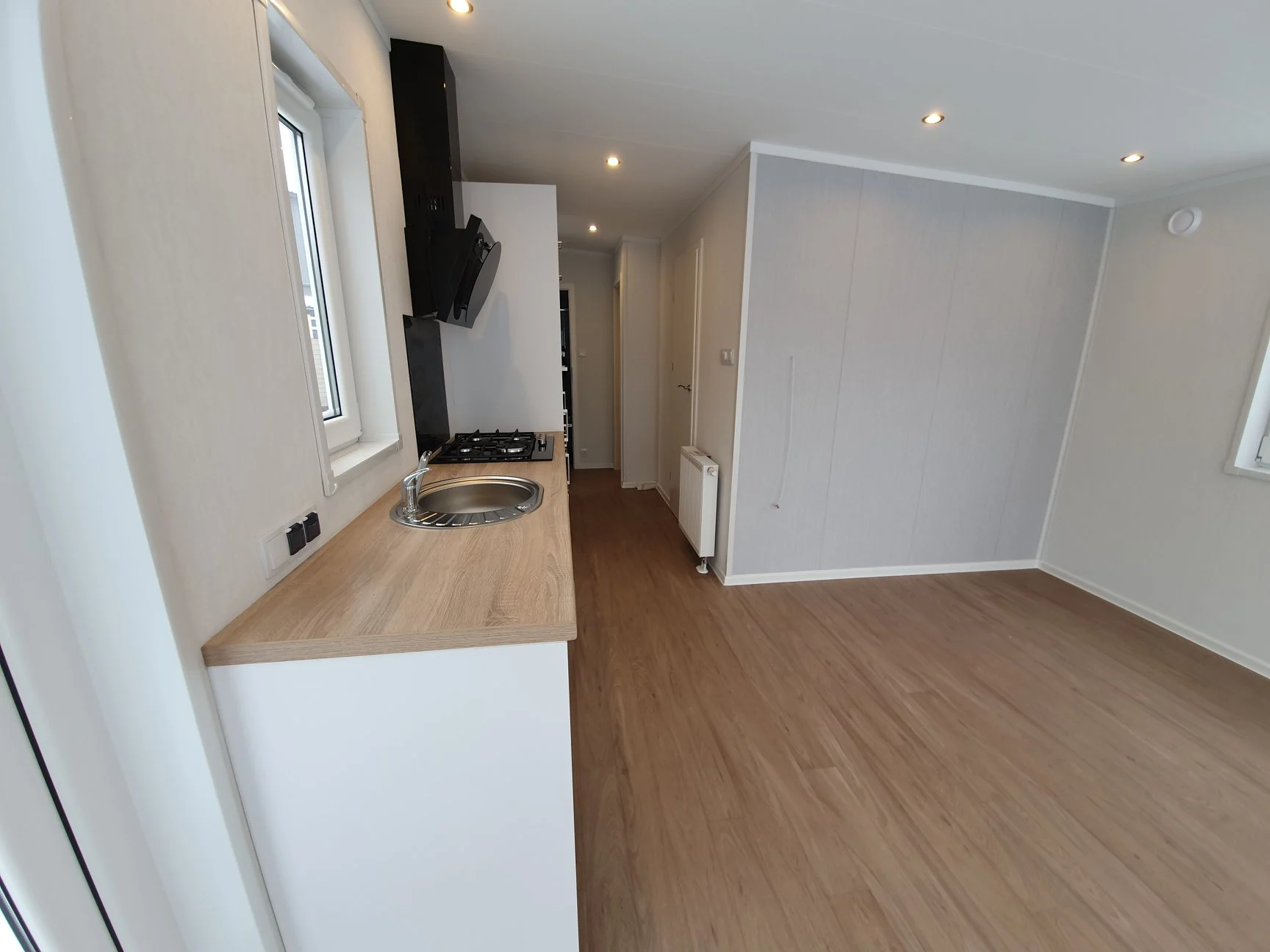 O Tinyhouse Neoglobo Modelo 4,80x6 mt é um módulo habitacional pré-fabricado de 28,8m², ideal para diversas utilizações. Com 2 quartos, casa de banho e cozinha, oferece conforto e funcionalidade em todas as estações. Design moderno, fácil de transportar e pronto a usar. Tinyhouse Neoglobo: A sua nova habitação, moderna e prática.