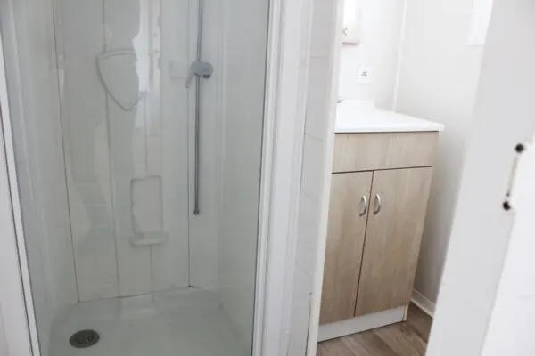 Descubra o conforto e a praticidade desta Tinyhouse Neoglobo usada de 33m². Com 2 quartos, terraço integrado e equipamentos completos, oferece um espaço funcional e acolhedor para férias ou estadias regulares. Pronta a instalar e usar, é uma solução habitacional móvel com excelente relação qualidade-preço. Tinyhouse Neoglobo: O seu lar móvel, pronto para viver.