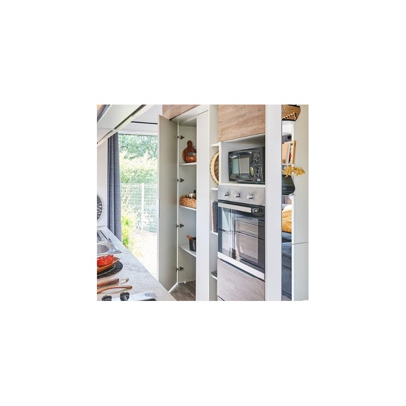 Descubra o conforto e a praticidade desta Tinyhouse Neoglobo usada de 33m². Com 2 quartos, terraço integrado e equipamentos completos, oferece um espaço funcional e acolhedor para férias ou estadias regulares. Pronta a instalar e usar, é uma solução habitacional móvel com excelente relação qualidade-preço. Tinyhouse Neoglobo: O seu lar móvel, pronto para viver.
