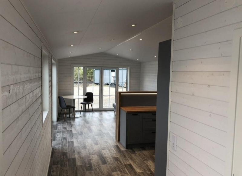 A Tinyhouse Neoglobo Chalé Branco oferece uma moradia elegante e funcional de 11,0 x 3,7 m. Com 2 quartos, sala espaçosa com kitchenette e casa de banho completa, é perfeita para até 3 pessoas. Desfrute do conforto do aquecimento centralizado e de um design moderno, ideal para viver todo o ano. Tinyhouse Neoglobo: O seu chalé móvel, pronto para habitar.