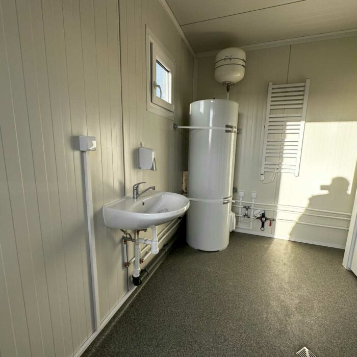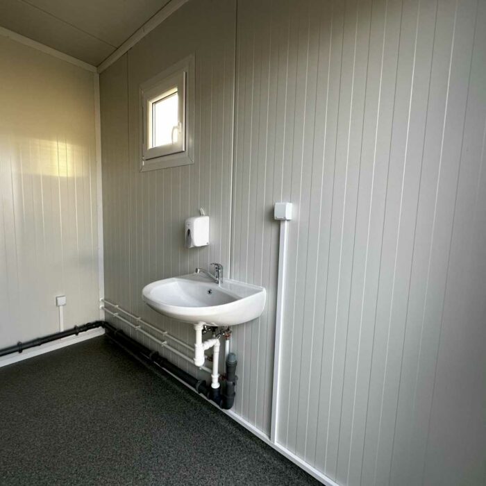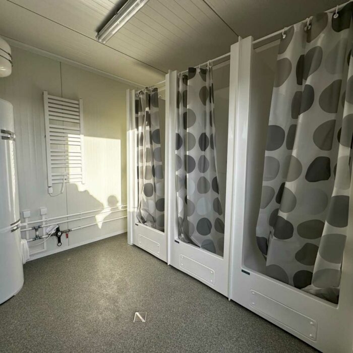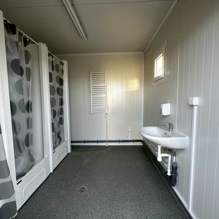 NOVO CONTENTOR SANITÁRIO DIVIDIDO 3×6 EQUIPADO COM 6 CHUVEIROS / 2 LAVATÓRIOS / AQUECEDOR DE ÁGUA DE 300L